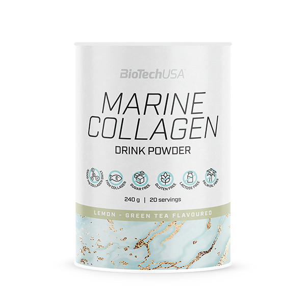 A Marine Collagen 84%- os halkollagén tartalmának köszönhetően, egy adag (12 g) italpor felhasználásával egy frissítő ital formájában napi 10 g kollagénhez juttatja a szervezetünket. A kollagént a szerveztünk termeli, azonban a kor előrehaladtával érdemes külső forrásokból is támogatni a képződését, jó minőségű kollagén termékek fogyasztásával. A C-vitamin hozzájárul a normál kollagénképzéséhez, ezen keresztül pedig nem csak a bőr és az erek, de a normál csontozat fenntartásához, a porcok normál állapotának és működésének, továbbá a fogak és a fogíny normál állapotának fenntartásához is. A citromos zöldtea ízesítésben elérhető kollagénital a napi szépségrutinod frissítő itala lehet!